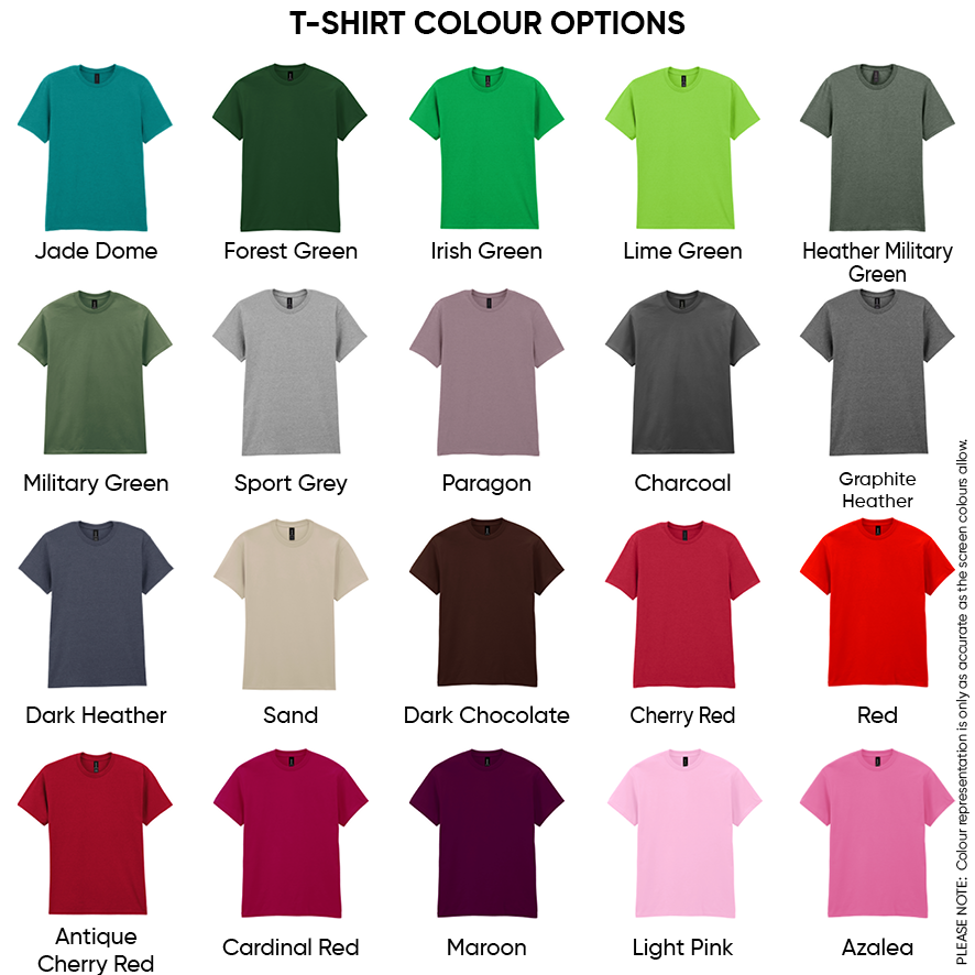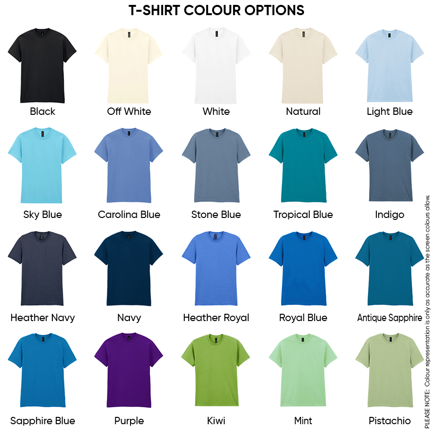 Gildans Softstyle Tshirt available in a range of 43 colours and sizes from Small up to 5XL.
