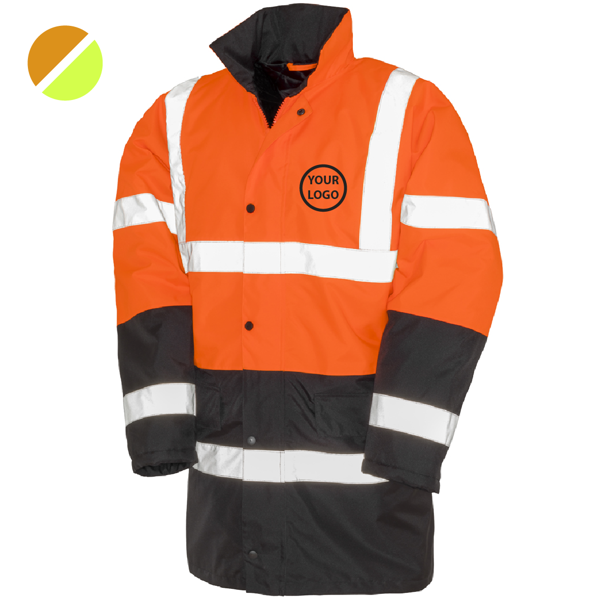 • Two reflective bands around the body, sleeves and one over each shoulder.