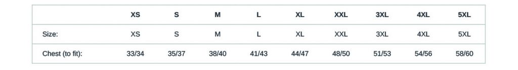 XS, S, M, L, XL, 2XL, 3XL, 4XL, 5XL