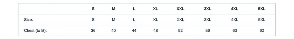 S, M, L, XL, 2XL, 3XL, 4XL, 5XL