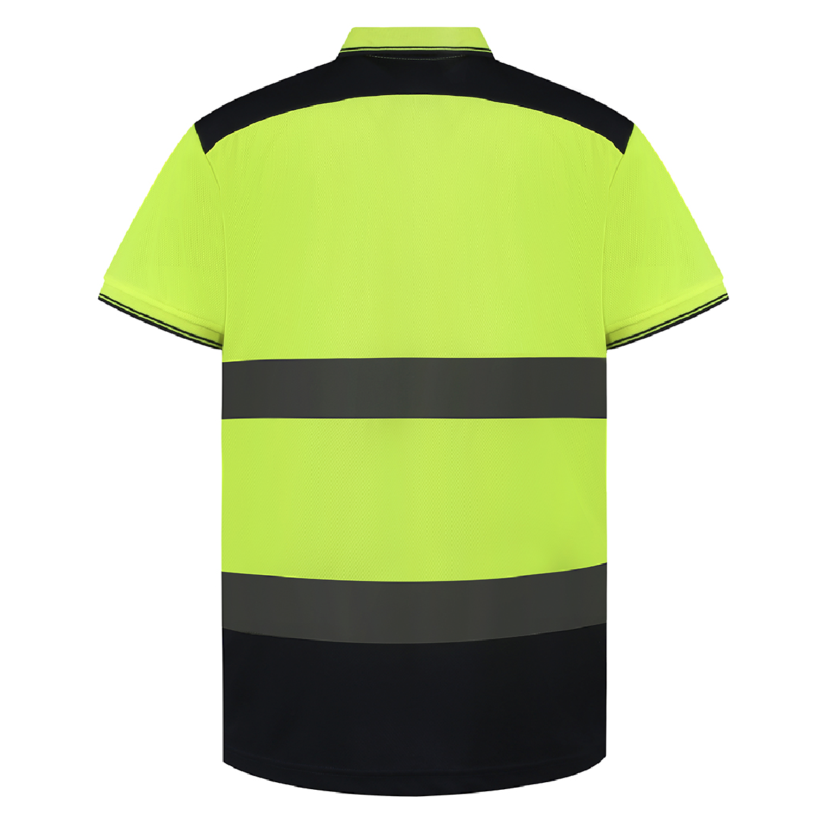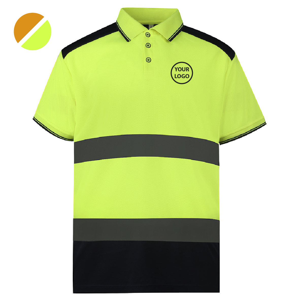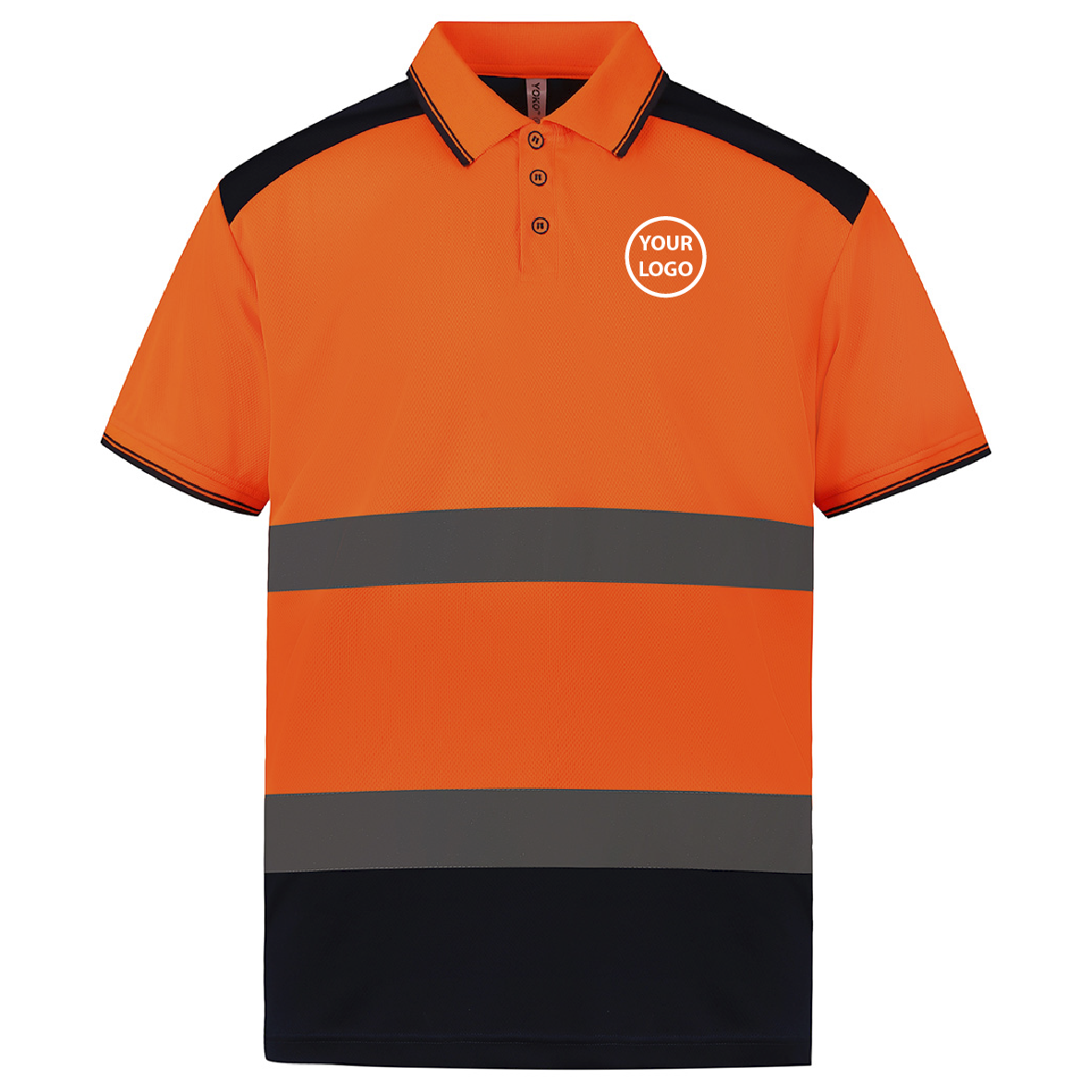 YOKO two tone polo shirt available in flourescent orange and yellow with a contrast of navy and sizes from S up to 6XL.